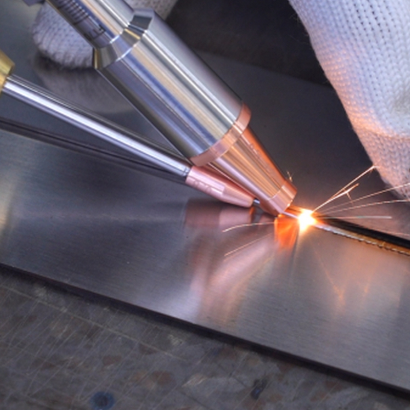 手持式焊接機采用高功率光纖激光器做為激光發(fā)射源。焊接機主要組成部分有:激光器(含光纖)、激光焊接頭、控制器、冷水機等。運用手持激光焊接頭進(jìn)行運動(dòng),同時(shí)配置雙溫雙控冷水機,低溫水為激光器降溫使用,高溫水為光纖及焊接頭降溫使用。